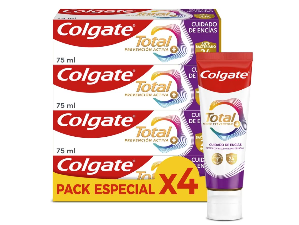 ๐ Pack 4 Pasta de dientes,75ml Colgate Total Prevenciรณn Activa + Cuidado de Encรญas. #Amazon