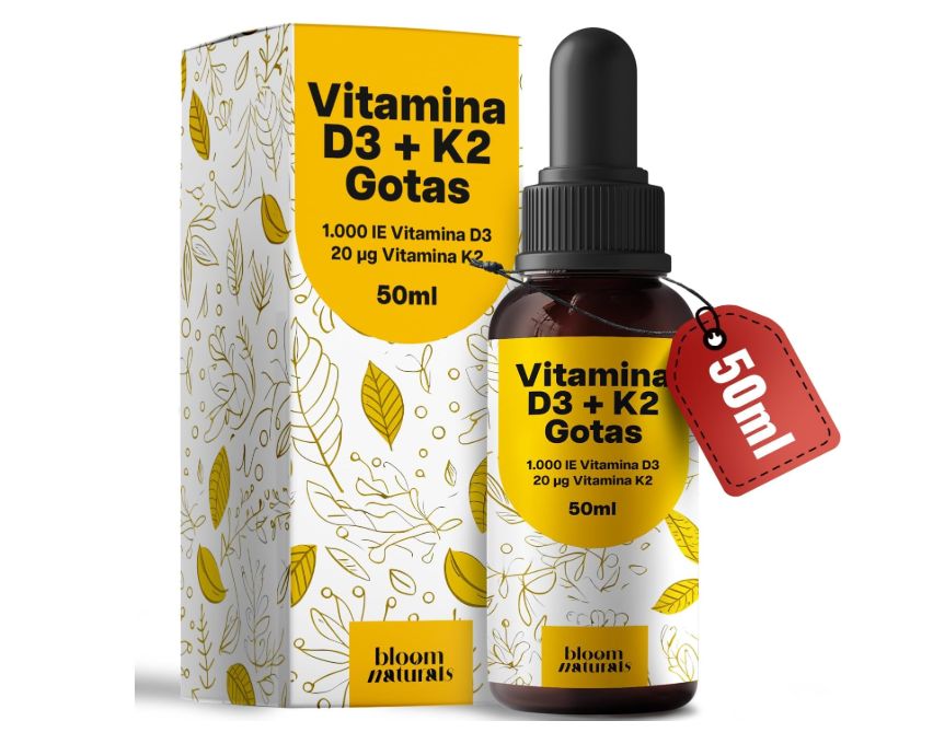 โจ Suplemento lรญquido que combina 1.000 UI de vitamina D3 y 20 ยตg de vitamina K2 por gota para fortalecer el sistema inmunitario y los huesos