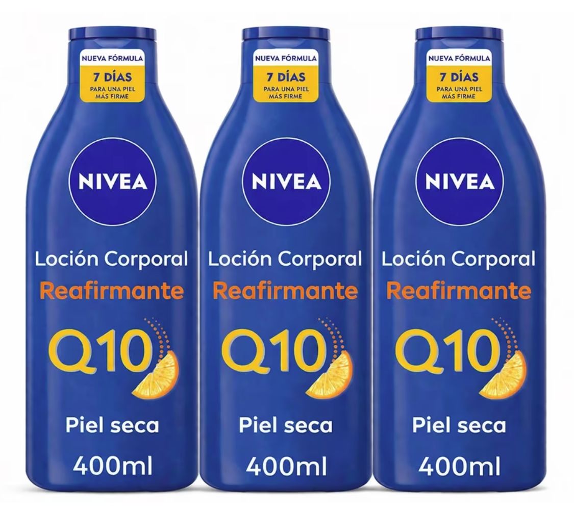 ๐ฅ Pack 3 NIVEA Q10 Body Milk Reafirmante crema hidratante corporal 72h para piel seca, vitamina C y Q10 puro, 400ml. #Amazon
