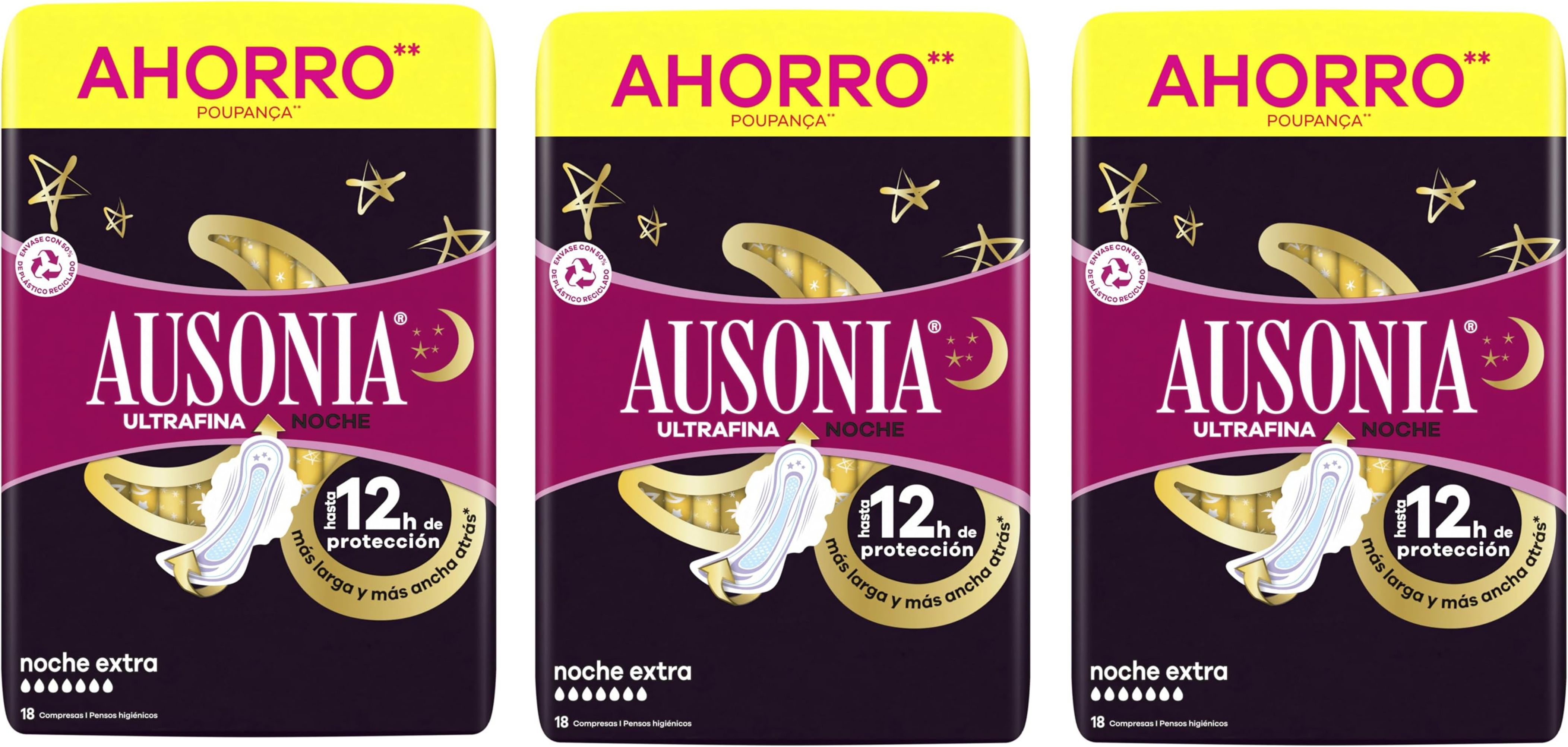 🛒 Pack 3 Ausonia Compresas Ultrafina Noche Extra Con Alas 18 ud. #Amazon