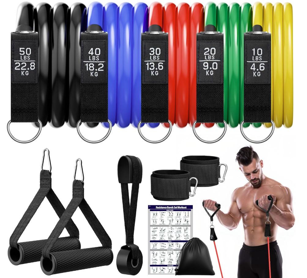 ๐ Fokky Gomas Elรกsticas Musculaciรณn, 5 Diferentes Niveles, con Anclaje para Puerta, Asas, Correa para Tobillo, Pilates, Yoga, Desarrollo Muscular. #Amazon