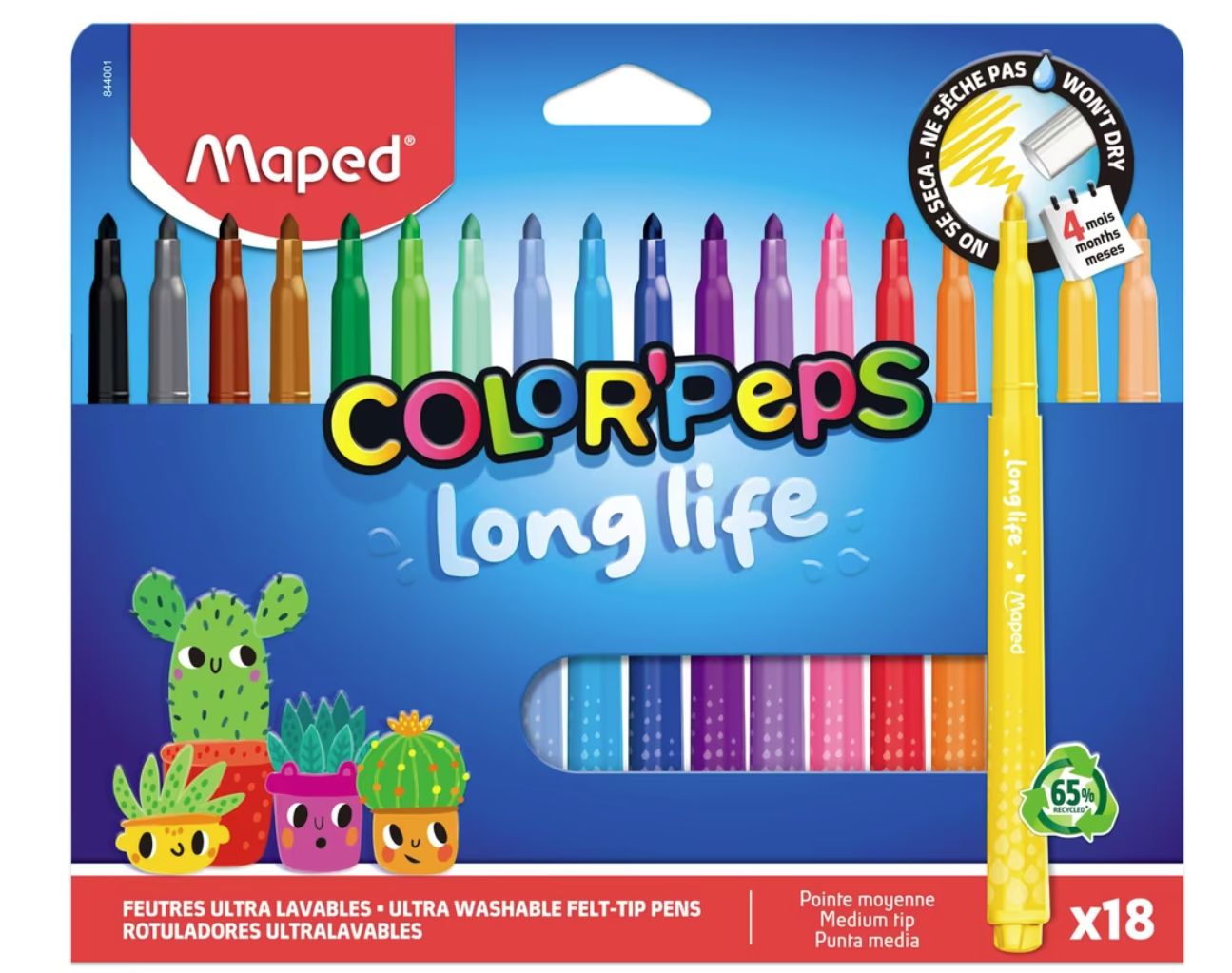 ๐ 18 Maped Rotuladores de color Pep's Long Life lavables con punta bloqueada sรบper resistente, no se seca sin tapa, colores brillantes. #Amazon