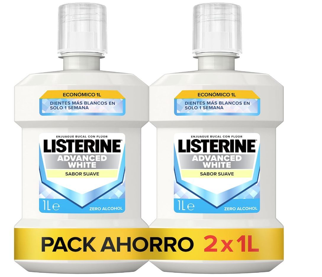 ๐ Pack 2 Listerine Advanced White Sabor Suave enjuague bucal pack ahorro 0% alcohol, colutorio blanqueador dental. #Amazon