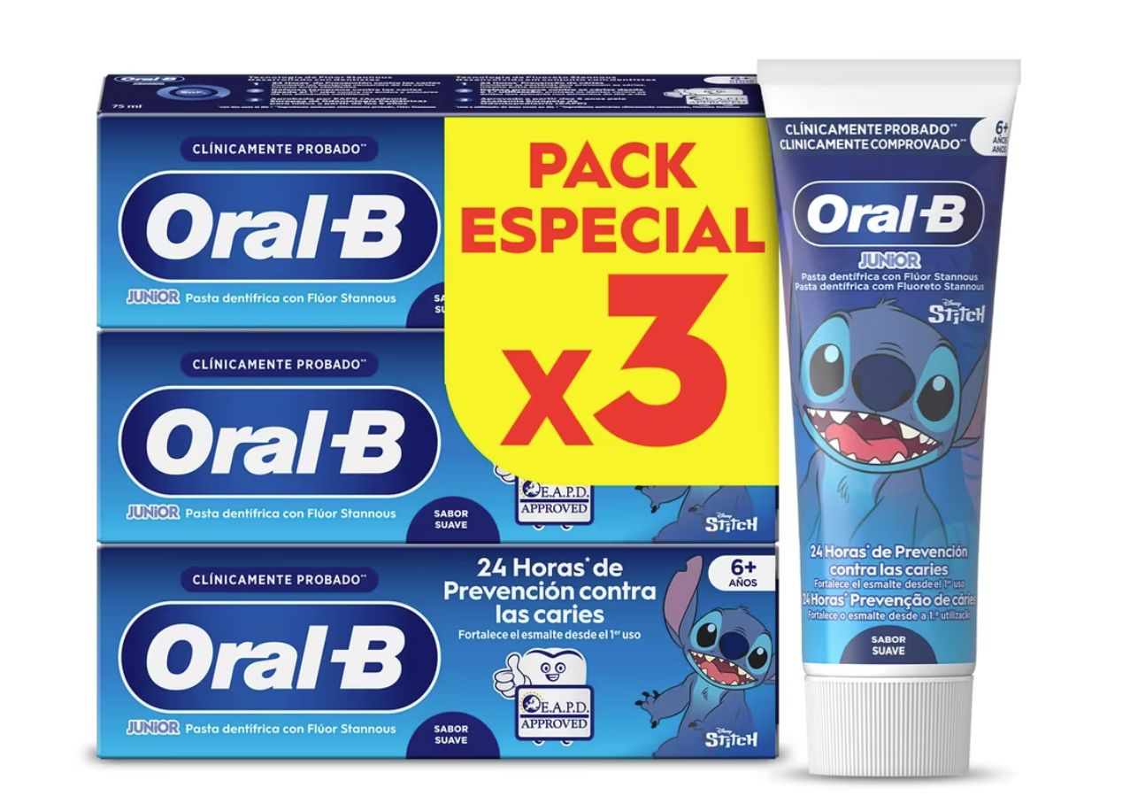 ๐ Pack 3 Oral-B Pro Junior Disney Stitch Pasta de Dientes para Niรฑos, Elimina la Placa y Previene las Caries, 75 ml. #Amazon