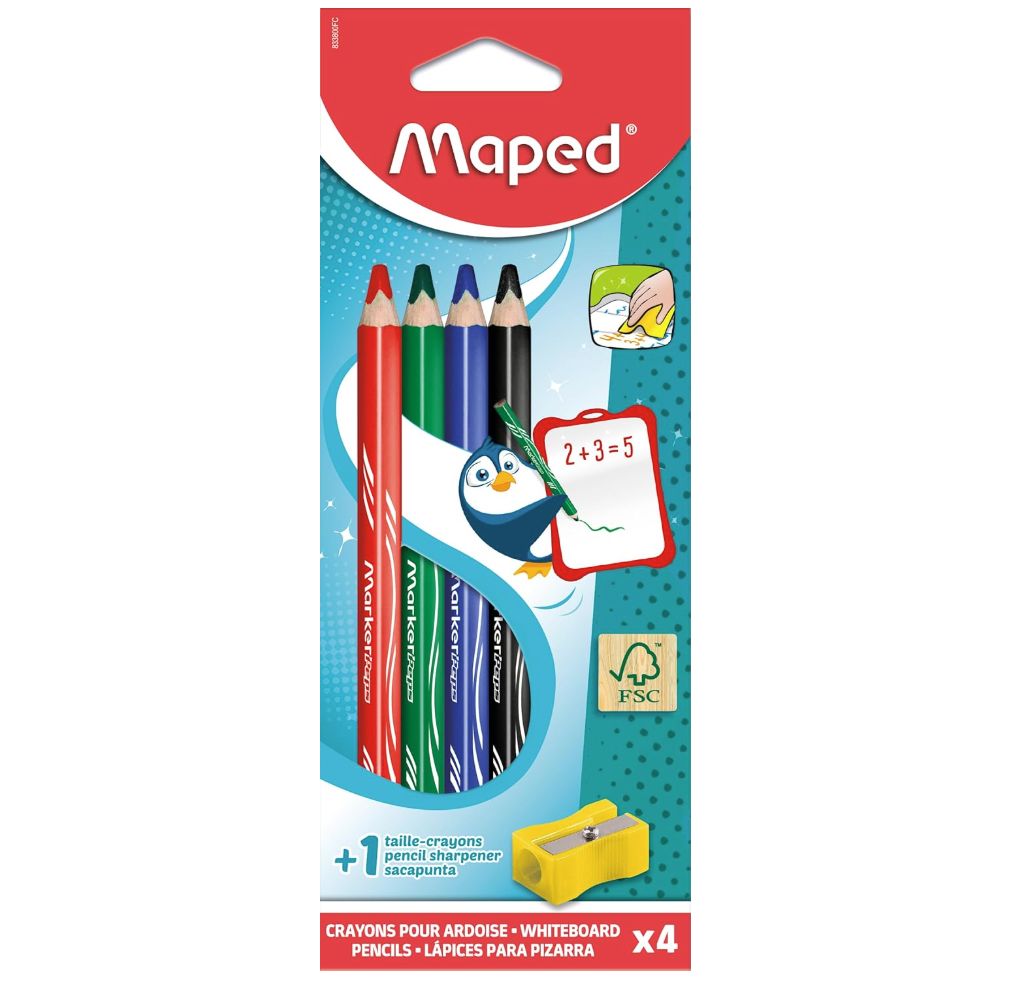 ๐ Pack de 4 Maped MarkerโPeps, Lรกpices para Pizarra Blanca + Sacapuntas. #Amazon