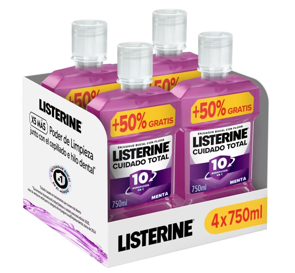 ๐ Pack 4 Listerine Cuidado Total Enjuague Bucal 750 ml. #Amazon