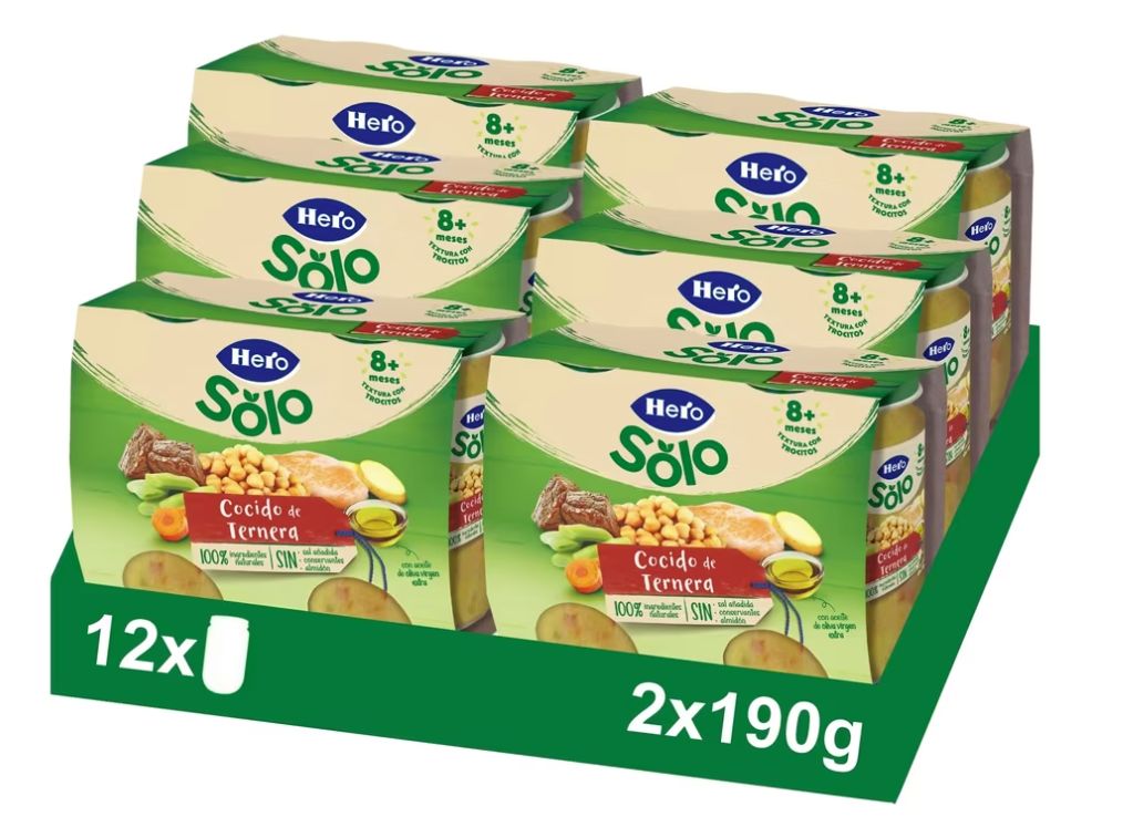 ๐ Pack 12 Hero Baby Tarrito Infantil, Recetas Caseras de Cocido de ternera, sin Aceite de Palma , Sin Sal Aรฑadida, Bebรฉ desde 8 Meses,190gr. #Amazon