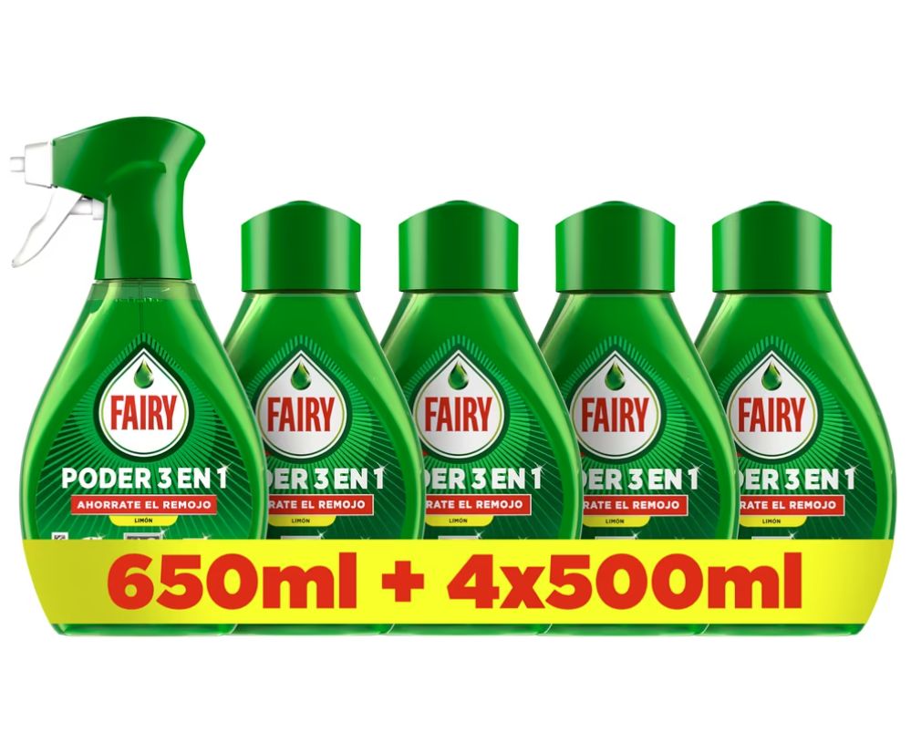 ๐ Pack 5 Fairy Pack Poder Sin Remojo Limรณn Spray 650ml + 4 Recambios 500ml. #Amazon