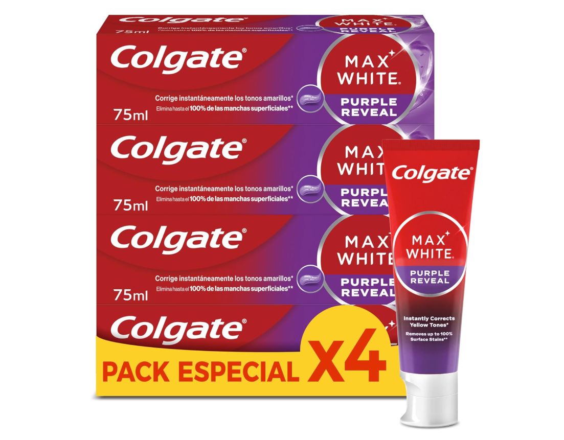 ๐ Pack 4 pastas dientes Colgate max white purple reveal 75ml blanqueadora. #Amazon