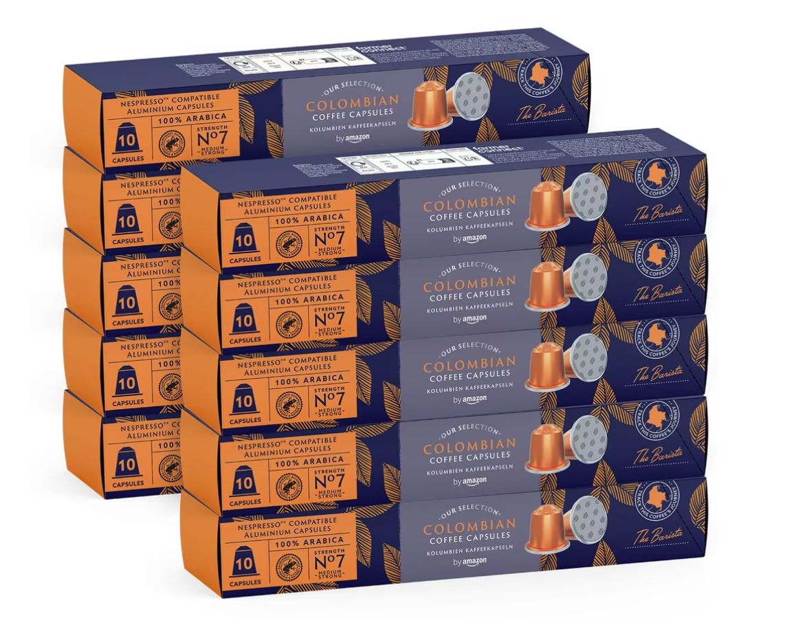๐ Pack 100 Caps By Amazon Cafรฉ Colombiano Compatible con Nespresso, 100% Arรกbica, Tueste Medio. #Amazon