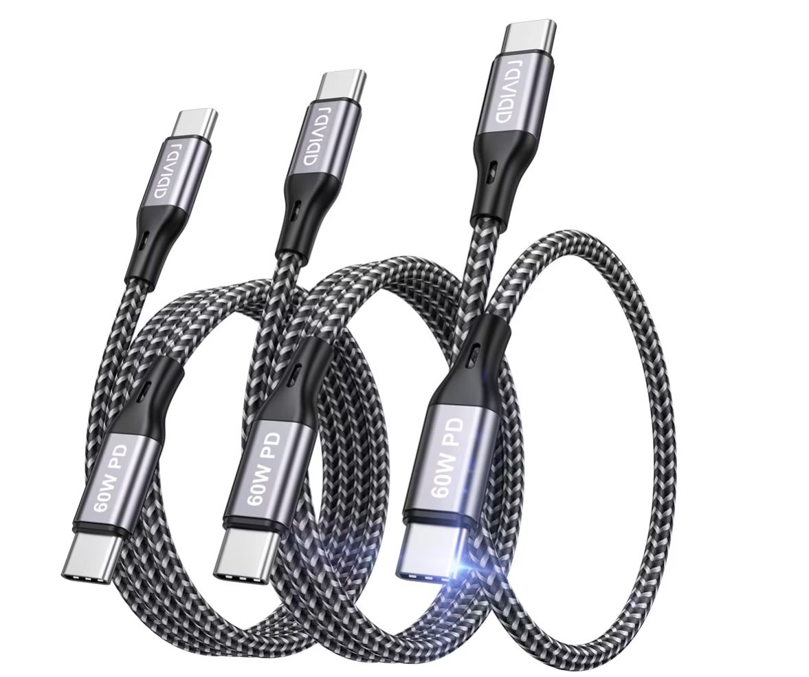 ๐ RAVIAD Cable USB C a USB C [3Pack 0.3M+1M+2M] 60W. #Amazon