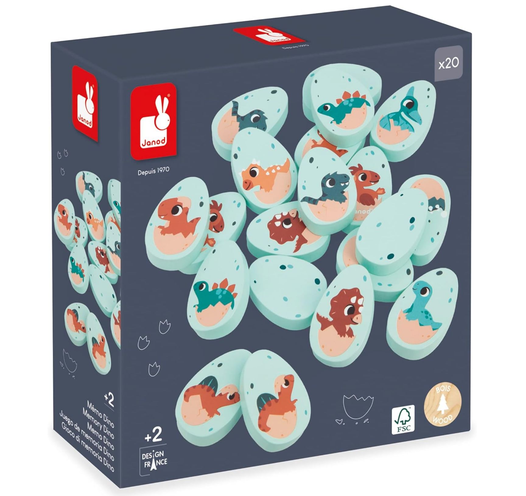 😀 Janod Juego de Memoria Dinosaurios, 20 Piezas de Madera de Huevos Dinosaurio. #Amazon