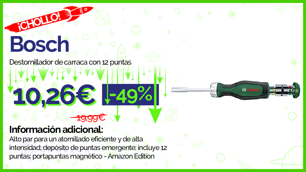 💥 🔉 Bosch - Destornillador de carraca con 12 puntas #Amazon