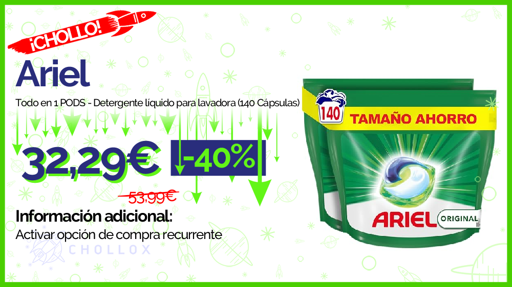 💥 🔉 Ariel - Todo en 1 PODS - Detergente líquido para lavadora (140 Cápsulas) #Amazon