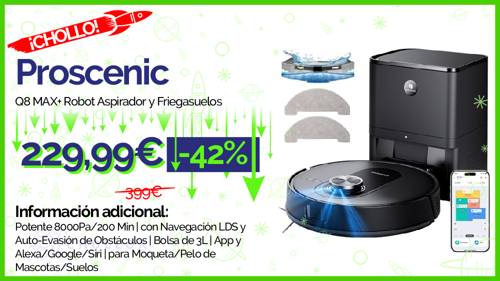 💥 🔉 Proscenic- Q8 MAX+- Robot Aspirador y Fregasuelos #Amazon