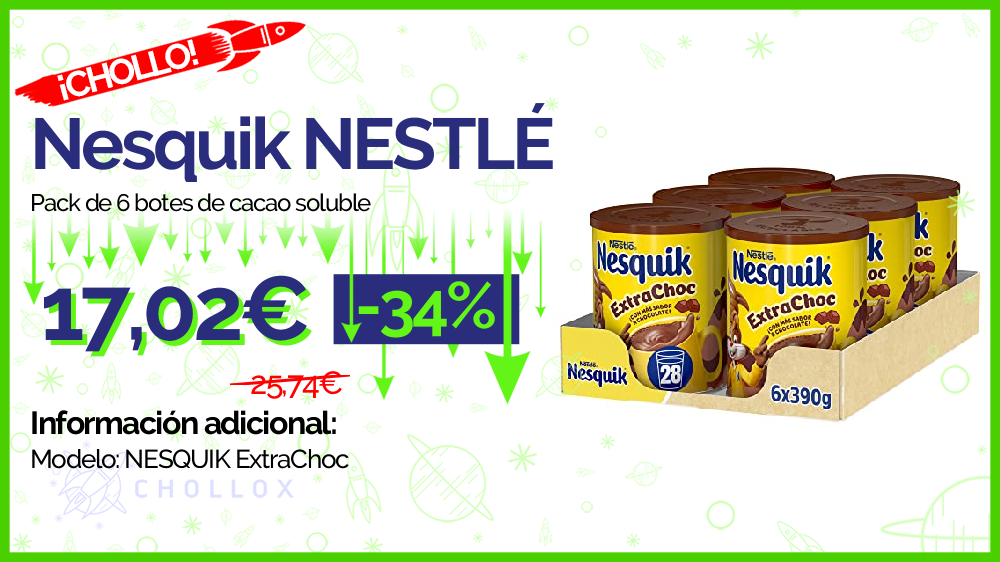 💥 🔉 Nesquik NESTLÉ - Pack de 6 botes de cacao soluble #Amazon