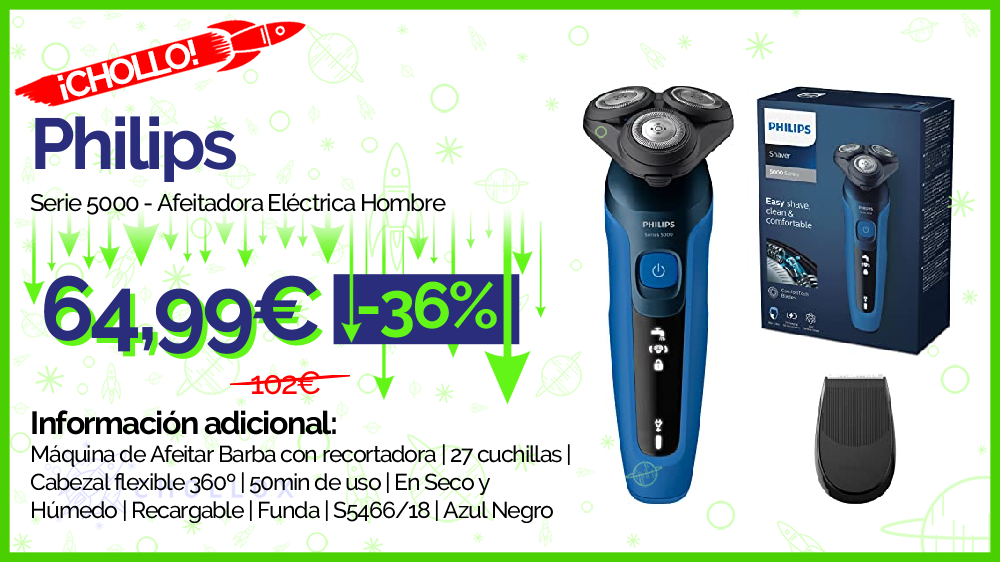 💥 🔉 Philips - Serie 5000 - Afeitadora Eléctrica Hombre #Amazon
