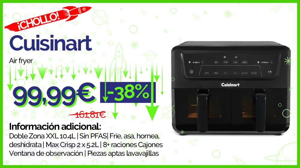 💥 🔉 Cuisinart Air Fryer XXL Doble Zona | Sin PFAS | 2x5.2L | Fríe, hornea, deshidrata, mantiene caliente | Cocina 8+ raciones | Piezas lavavajillas #Amazon