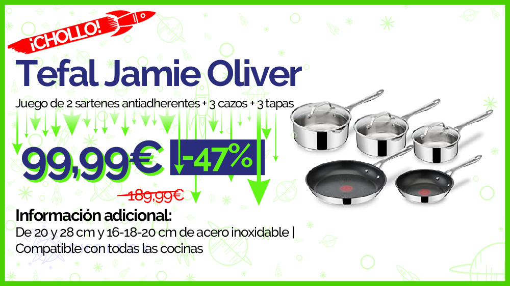💥 🔉 Tefal Jamie Oliver - Juego de 2 sartenes antiadherentes + 3 cazos + 3 tapas #Amazon