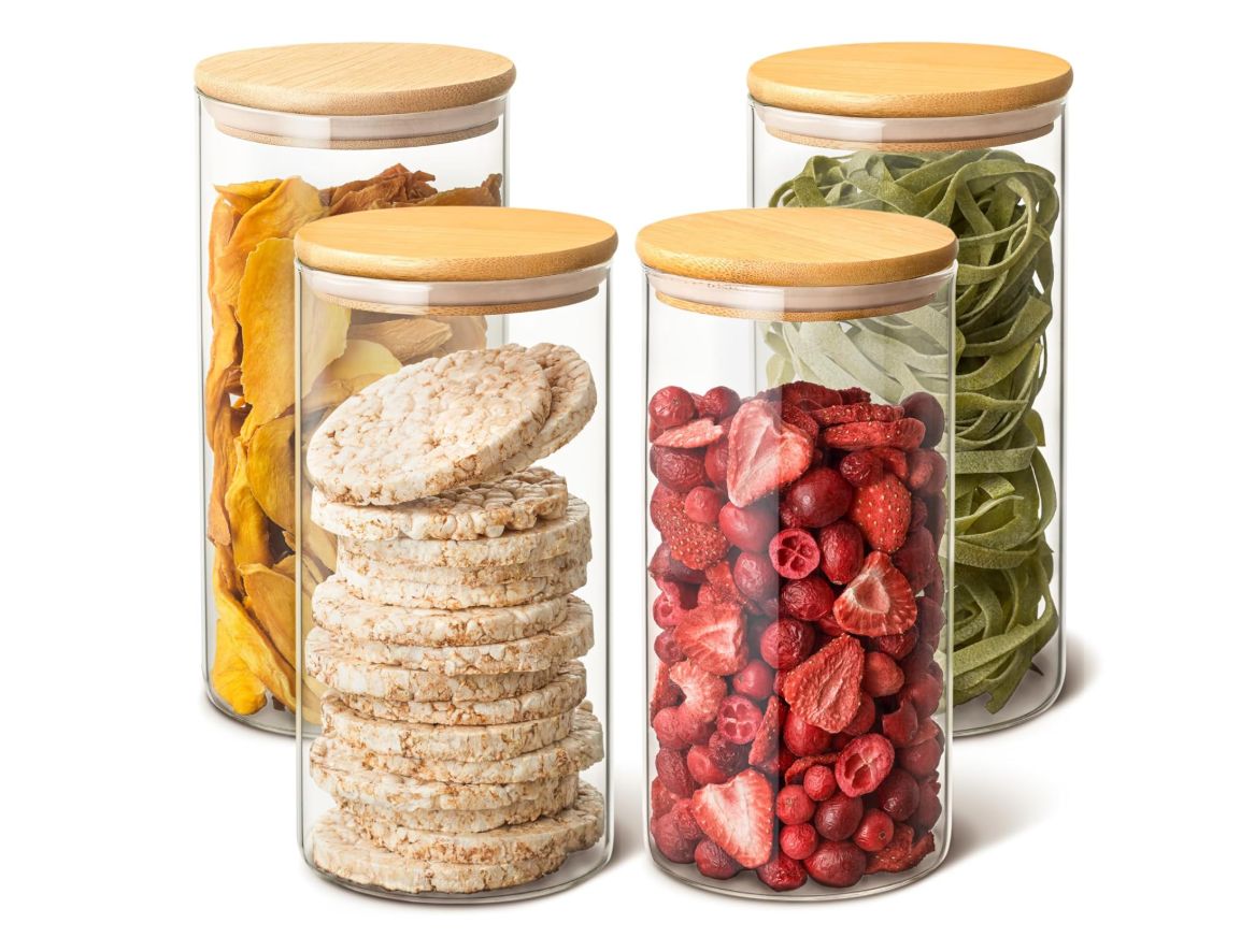 😀 PACK 4 uds Praknu Botes de Cristal de Cocina con Tapa de Bambú 1.2 l. #Amazon