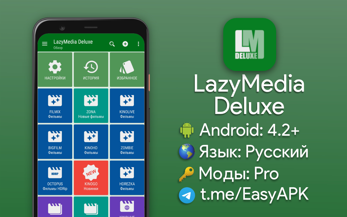 LazyMedia Deluxe — приложение для онлайн-просмотра фильмов и сериалов с популярных ресурсов. Можно пользоваться на ТВ-боксах и смартфонах. #apps @EasyAPK
