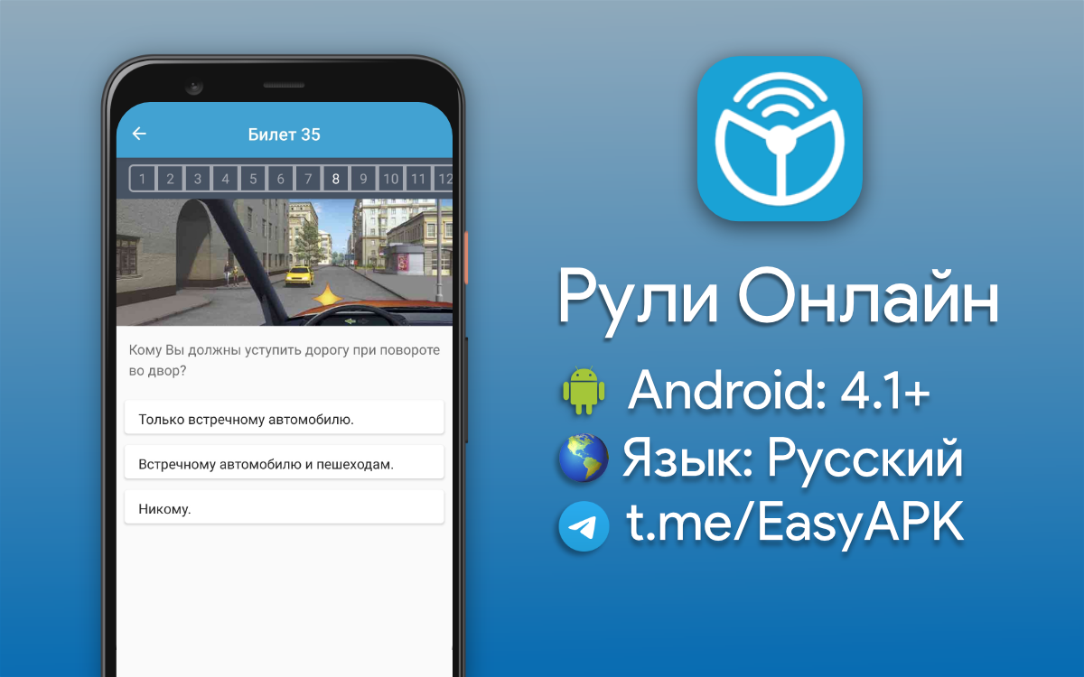 Рули Онлайн — приложение для комплексной подготовки к сдаче экзаменов на вождение. Билеты, видеокурсы, тесты и прочее. #apps @EasyAPK