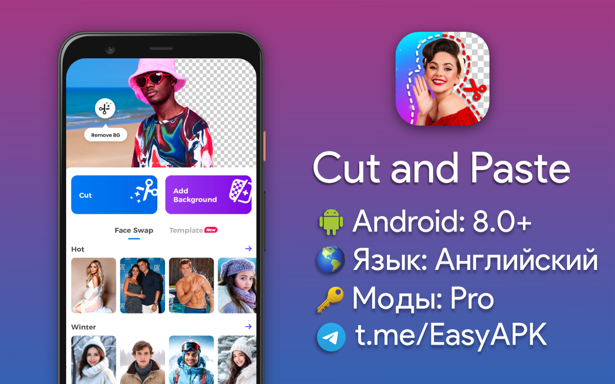 Cut and Paste — хороший фоторедактор с ИИ-функциями вырезания заднего фона и замены лица. #apps @EasyAPK