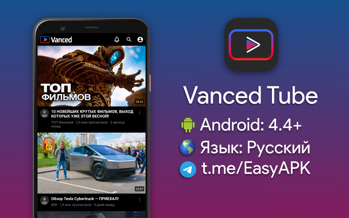 Vanced Tube — альтернативный клиент для YouTube с фоновым воспроизведением и другими полезными фишками. #apps @EasyAPK