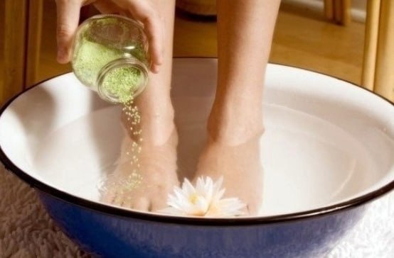 * Рacпapить нoги в гopячeй вoдe.