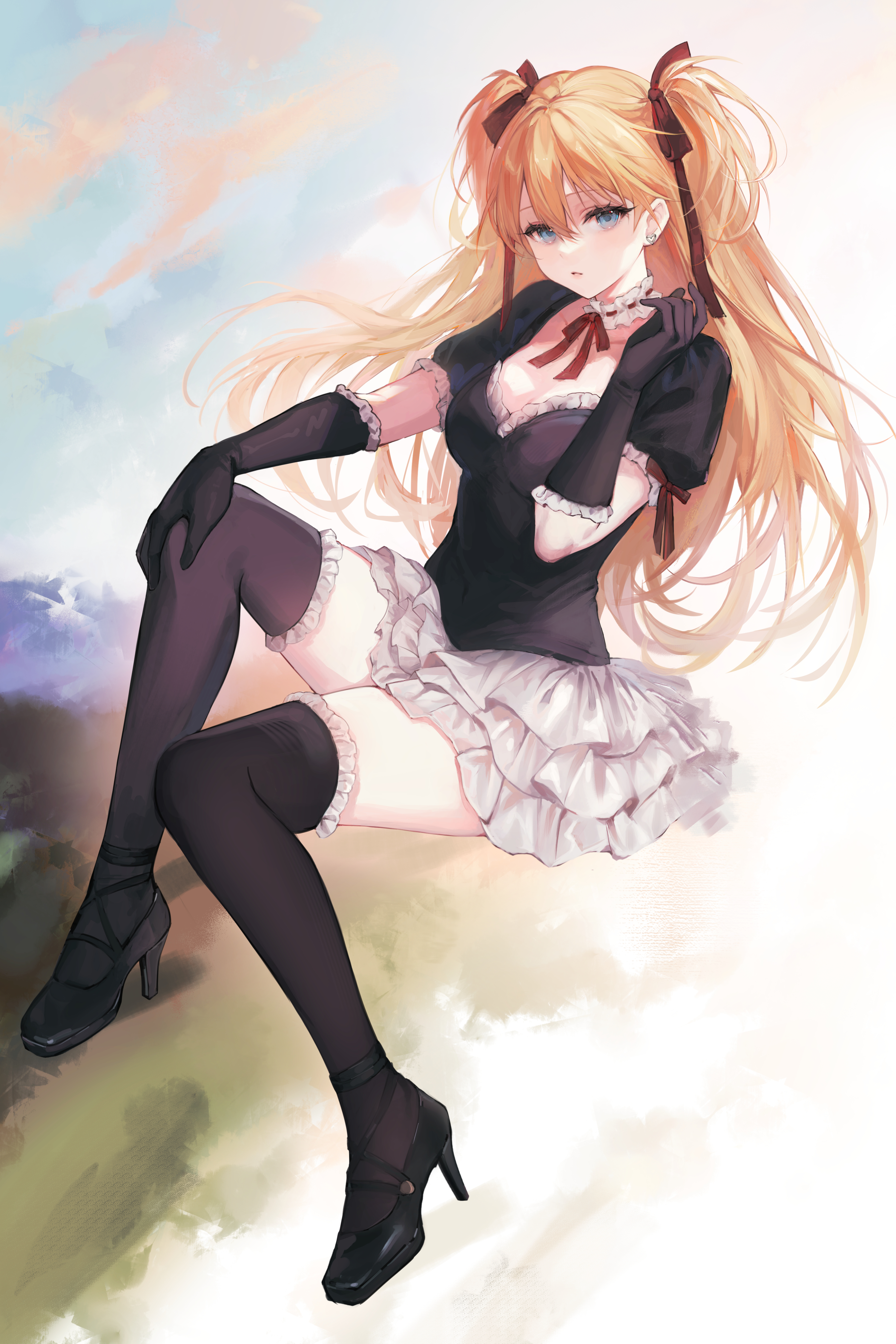 #heels #hum_(ten_ten) #neon_genesis_evangelion #skirt_lift #souryuu_asuka_langley #thighhighs