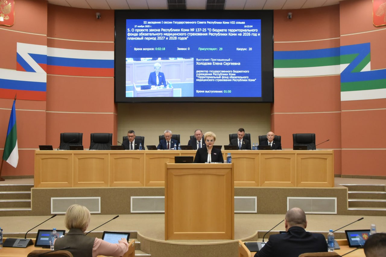 Государственный Совет Коми на сегодняшней сессии утвердил бюджет территориального фонда обязательного медицинского страхования на 2026 год и плановый период 2027–2028 годов. Решение принято сразу в двух чтениях — это предложил профильный комитет, и депутаты единогласно поддержали инициативу.