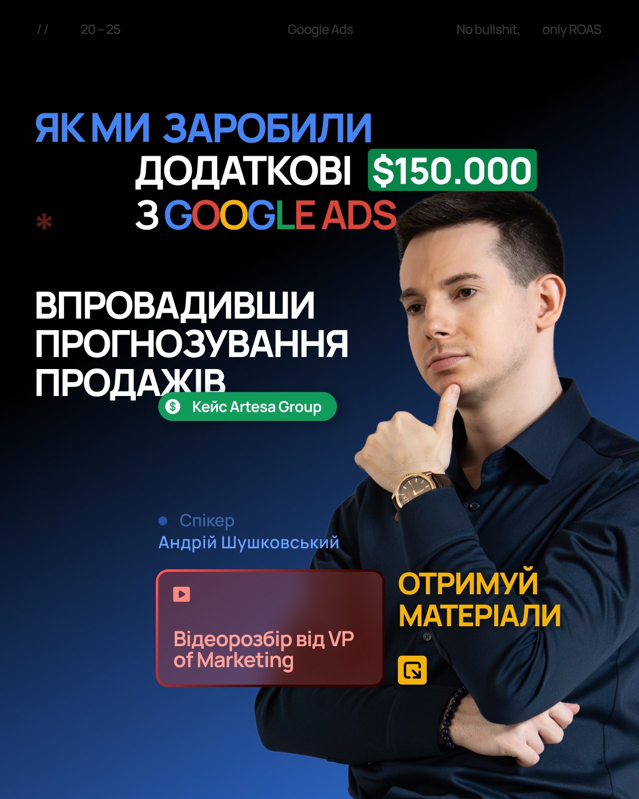 Як Андрій Шушковський в Artesa Group заробив додаткові $150.000 для бізнесу з Google Ads, впровадивши прогнозування продажів 📈