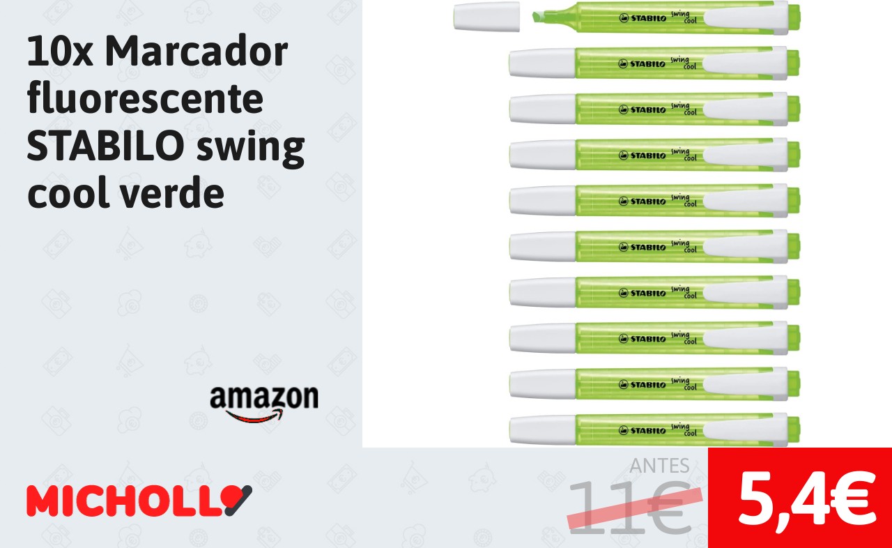 🔹 10x Marcador fluorescente STABILO swing cool verde solo 5,4€❗️❤️ (PVP: 11€)