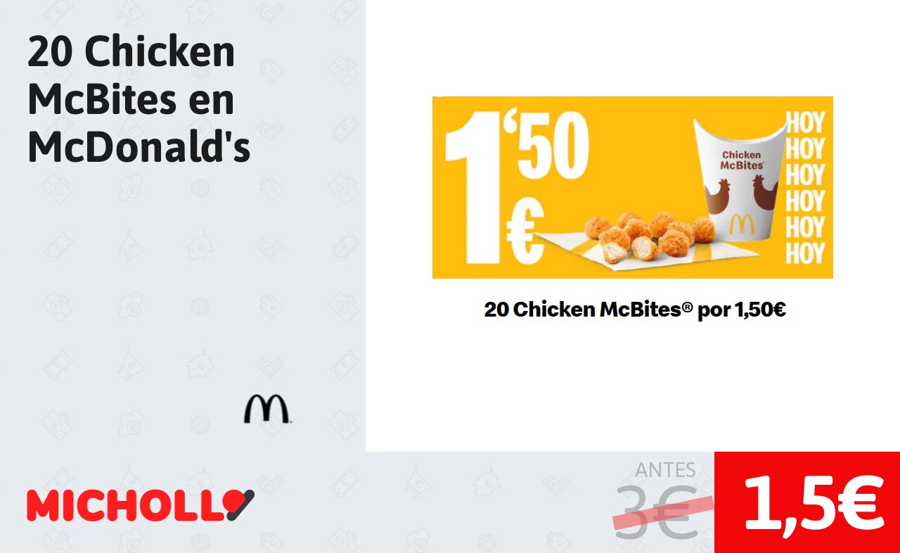 🔹 20 Chicken McBites en McDonald's solo 1,5€❗️❤️ (PVP: 3€)