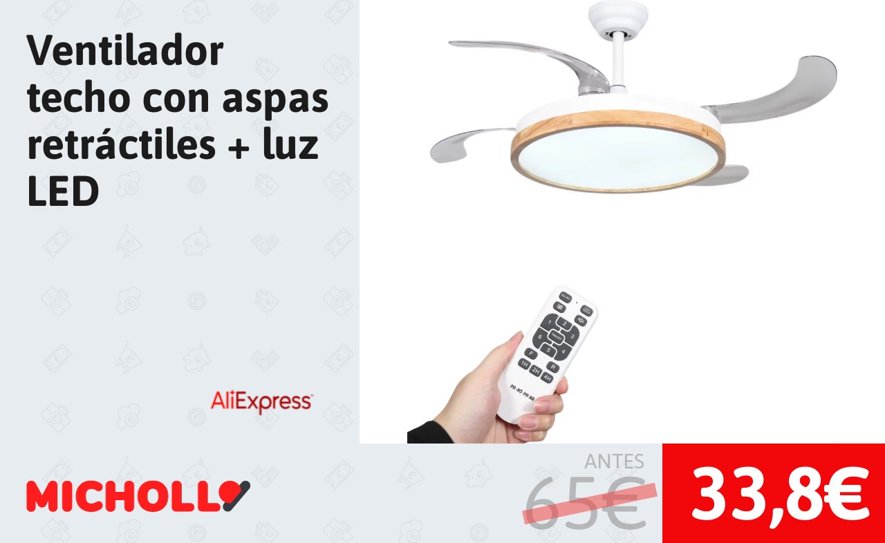 🔹 Ventilador techo con aspas retráctiles + luz LED solo 33,8€❗️❤️ (PVP: 65€)