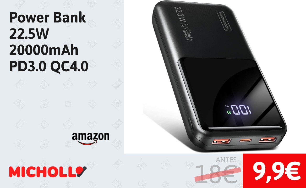 🔹 Power Bank 22.5W 20000mAh PD3.0 QC4.0 solo 9,9€❗️❤️ (PVP: 18€)