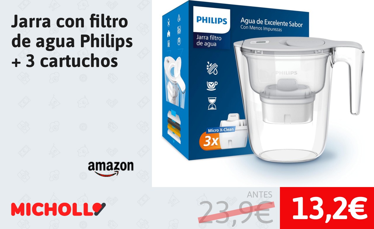 🔹 Jarra con filtro de agua Philips + 3 cartuchos solo 13,2€❗️❤️ (PVP: 23,9€)