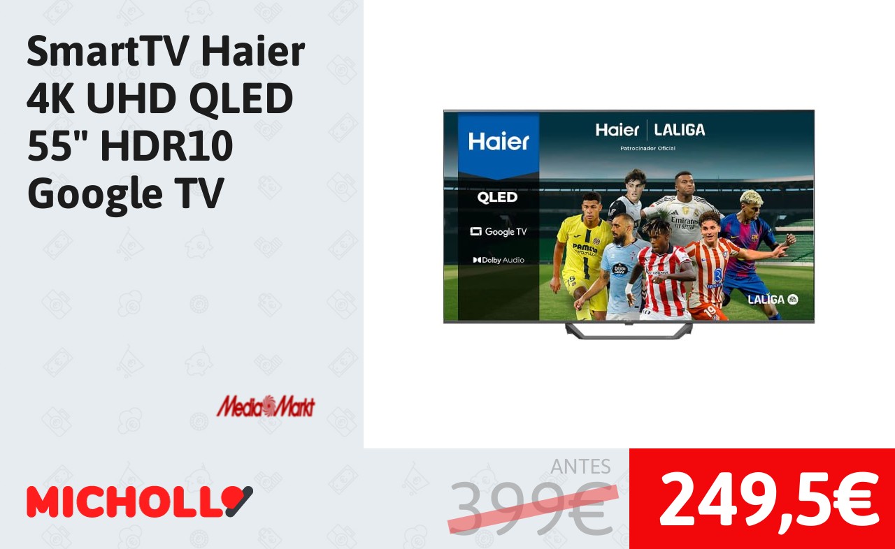 🔹 SmartTV Haier 4K UHD QLED 55" HDR10 Google TV solo 249,5€❗️❤️ (PVP: 399€)