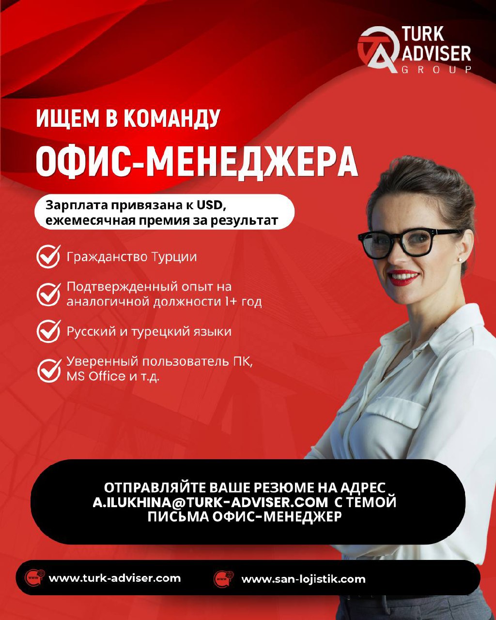 📣 Группа компаний TURK ADVISER Group ищет сотрудника на должность ОФИС-МЕНЕДЖЕР