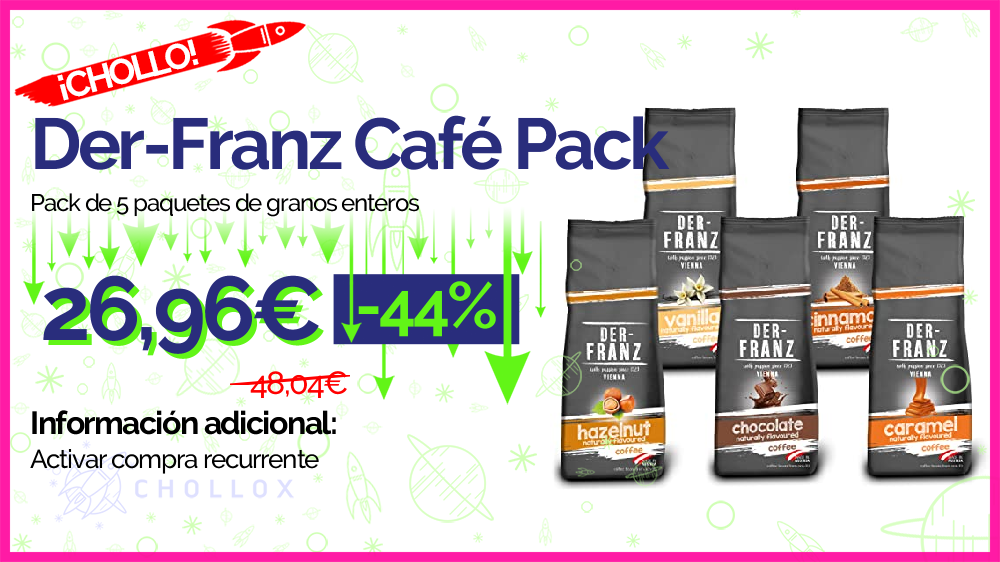 💥 🔉 Der-Franz Café - Pack de 5 paquetes de granos enteros: avellana, vainilla, chocolate, canela, caramelo #Amazon