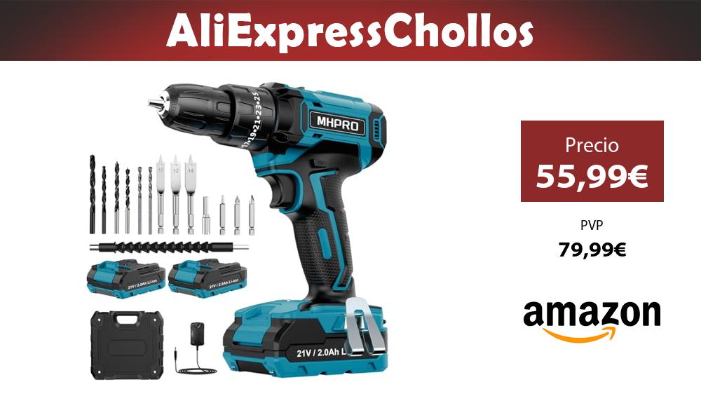 📣 MHPRO Taladro Percutor a Bateria 21V, Taladro Atornillador Bateria con 2x2.0Ah Baterías, Atornillador Electrico 42Nm, 25+3 Ajuste de Par, 14 Accesorios, 2 Velocidad, LED Luz Para Hogar, Bricolaje