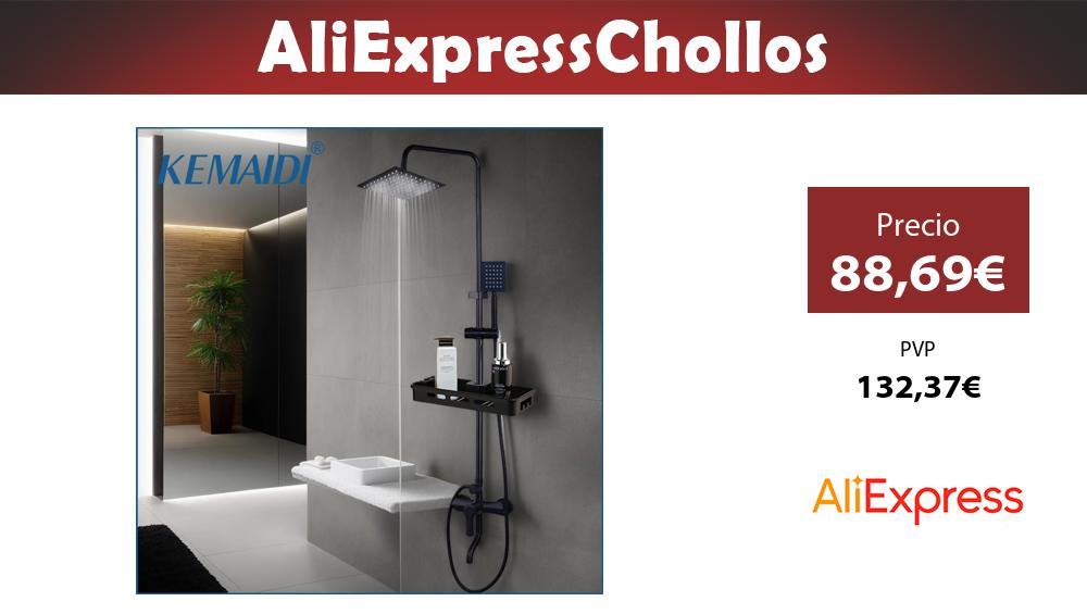 📣 KEMIDI, juego de grifería de ducha de lluvia negra mate, Palanca única, bañera, mezclador de ducha, grifo y estante de almacenamiento, mezclador de ducha, grifo de agua