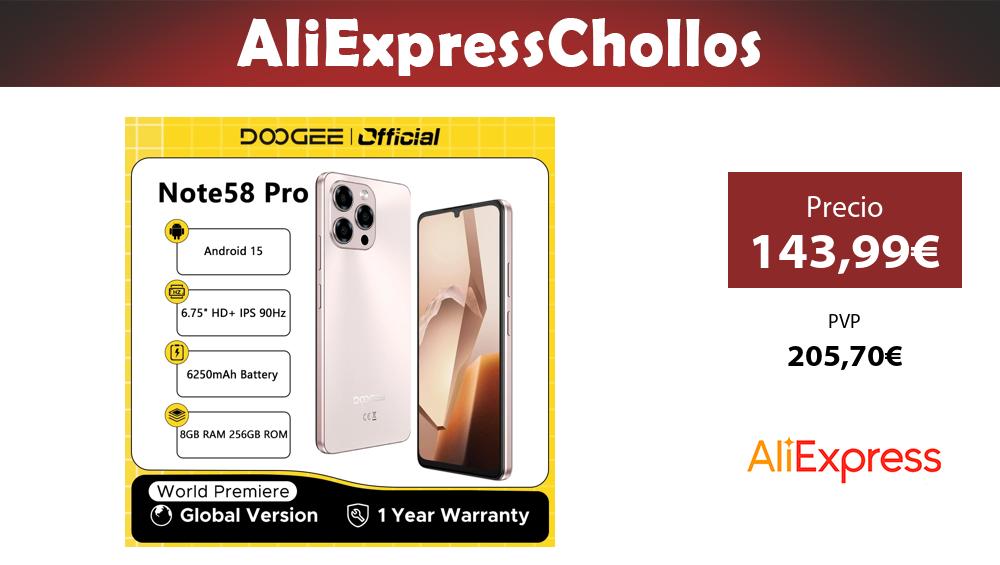 📣 Versión Global DOOGEE Note58 Pro Smartphone 6,75 "HD + pantalla 8GB RAM 256GB ROM 6250mAh batería grande NFC Android 15 teléfono móvil