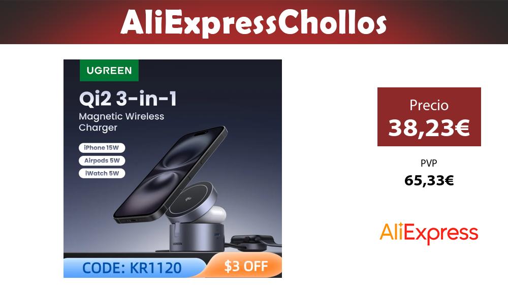 📣 UGREEN Qi2 15W Max cargador inalámbrico magnético 3 en 1 soporte de carga rápida cargador Magsafe para iPhone 15 16 Pro Max/AirPods