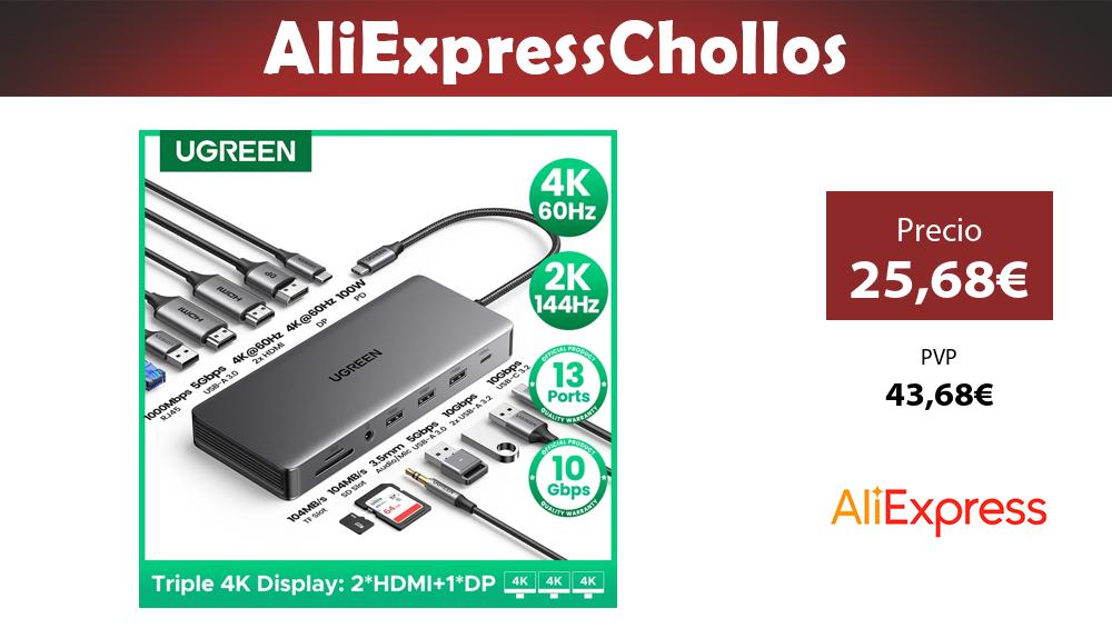📣 UGREEN 13 en 1 USB-C HUB Triple pantalla 4K Dual HDMI DP 10Gbps USB3.2 PD100W Estación de acoplamiento SD/TF para MacBook Pro Air Dell XPS
