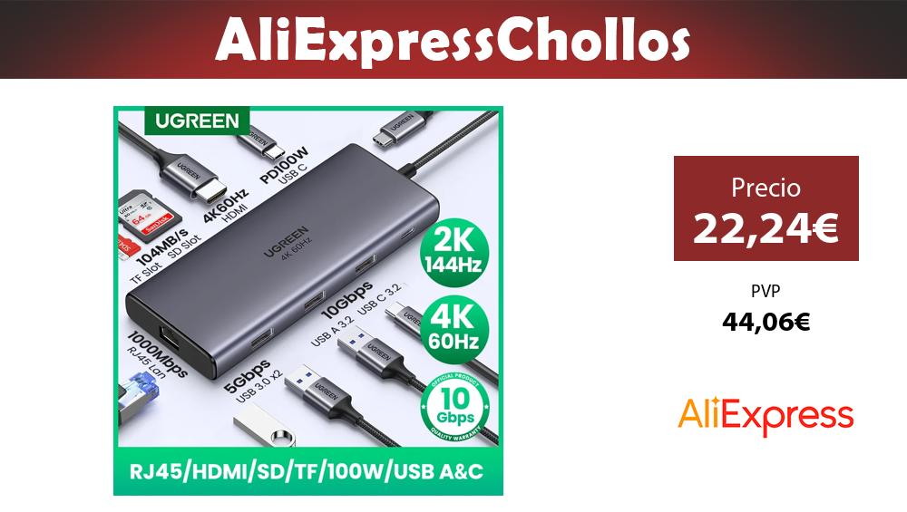 📣 UGREEN 10Gbps USB C HUB 4K60Hz tipo C a HDMI RJ45 PD100W SD y TF adaptador USB para Macbook iPad Samsung accesorios para ordenador portátil acoplamiento