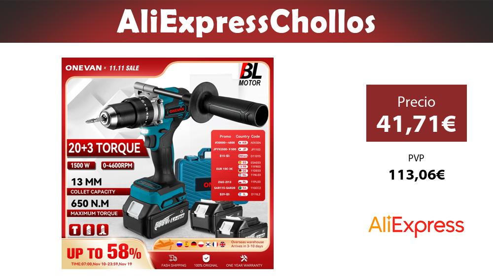 📣 ONEVAN-taladro de impacto eléctrico sin escobillas, 13MM, 650N.M, 20 + 3 torsión, herramienta eléctrica para taladro percutor para Pin de batería Makita de 18V