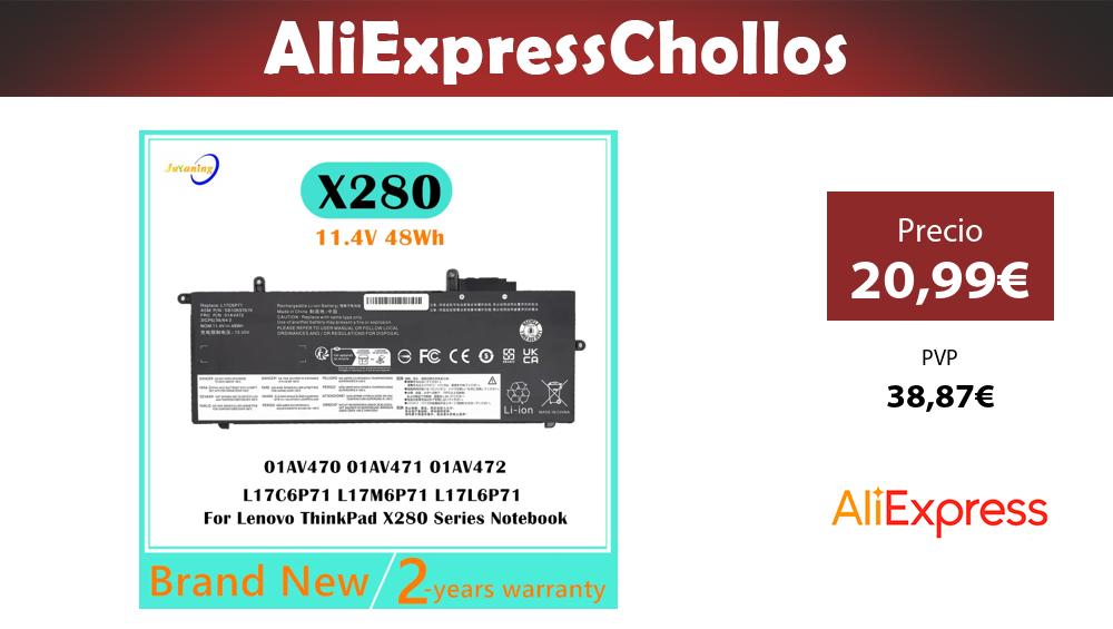 📣 Batería de ordenador portátil de 11,4 V 48Wh para Lenovo ThinkPad X280 Series Notebook L17C6P71 L17M6P71 L17L6P71 01AV470 01AV471 01AV472 SB10T83165
