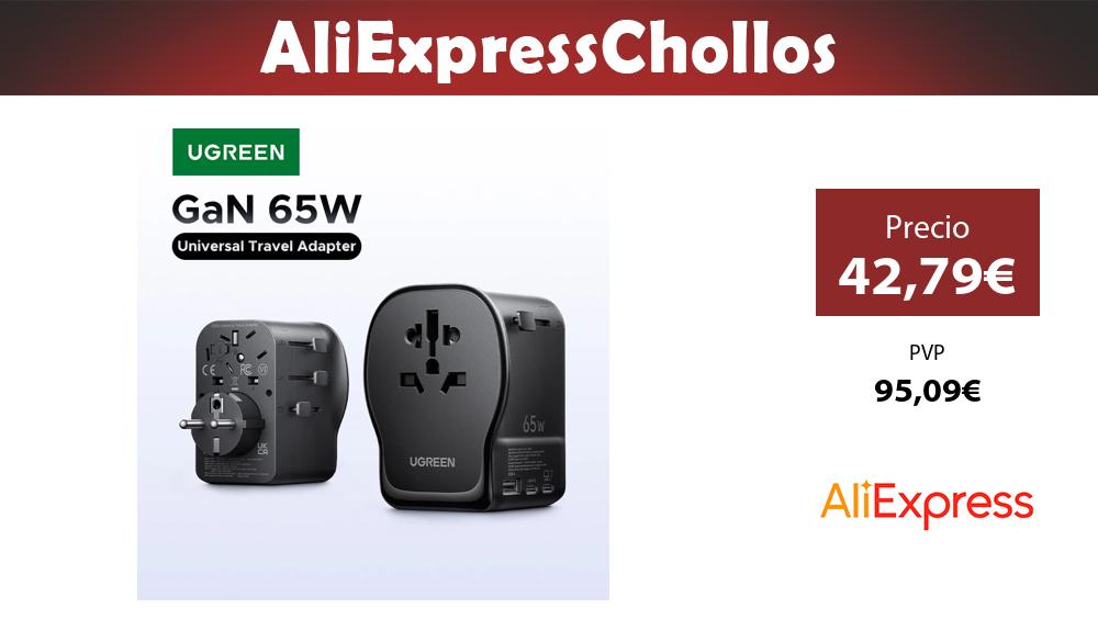 📣 UGREEN GaN 65W Adaptador de Viaje Universal 2 USB-C 1 USB-A Toma AC Certificado CE FCC UL Cargador Rápido Enchufe EU US UK con Toma de Tierra