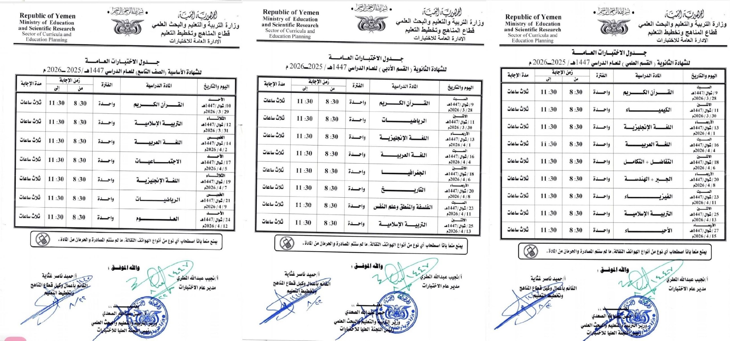 جداول الاختبارات الفصل الدراسي الثاني للعام الدراسي 1447 هـ / 2026م